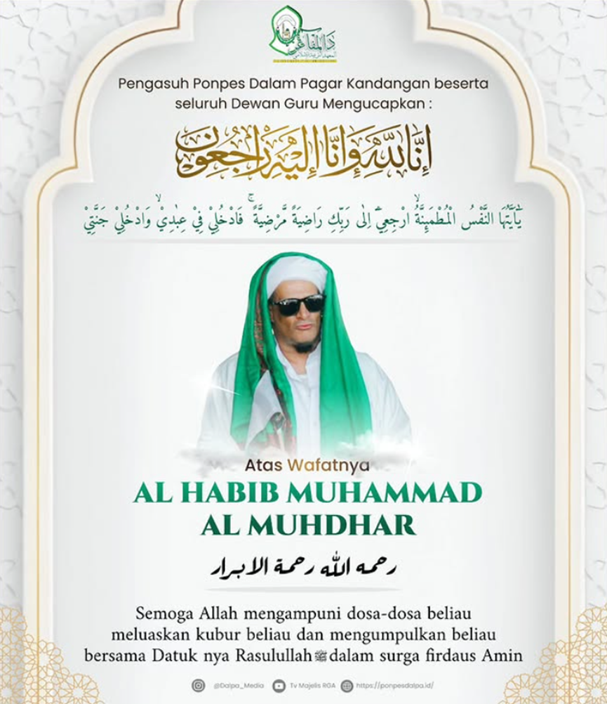 Kandangan 11 Januari 2026, Dalpa Redaksi– Innalillahi Wa Innailaihi Rajiuun Selamat Jalan Al-Habib Muhammad Bin Abdullah Bin Sholeh Al-Muhdhar Al-Makki, Kepergian Almarhum Menghadap Sang Kholik Menjadi Duka Bagi Pondok Pesantren Dalam Pagar Kandangan ,Beliau Wafat Pada Ahad, (11/1/2026), Dalam Usia 75 Tahun.